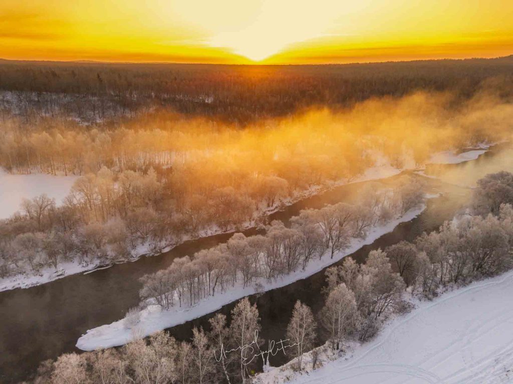 Photographers enjoy both ground-level perspectives and aerial opportunities. Drone shots capture the frozen river winding through misty landscapes, while close-ups highlight delicate ice crystals. Each frame tells a story of nature’s artistry.